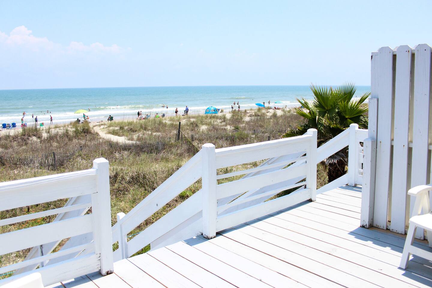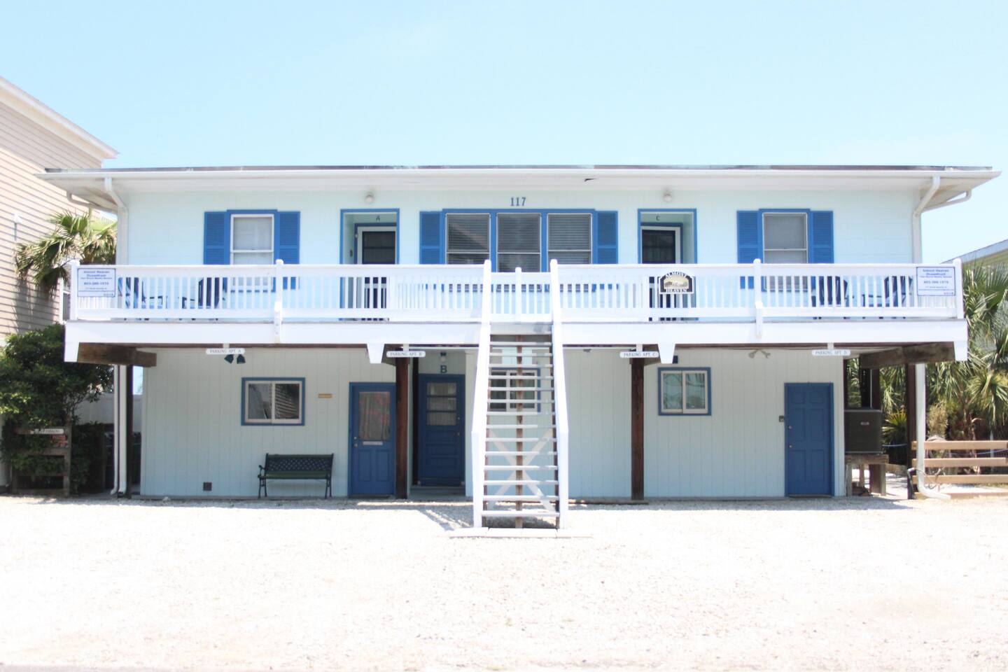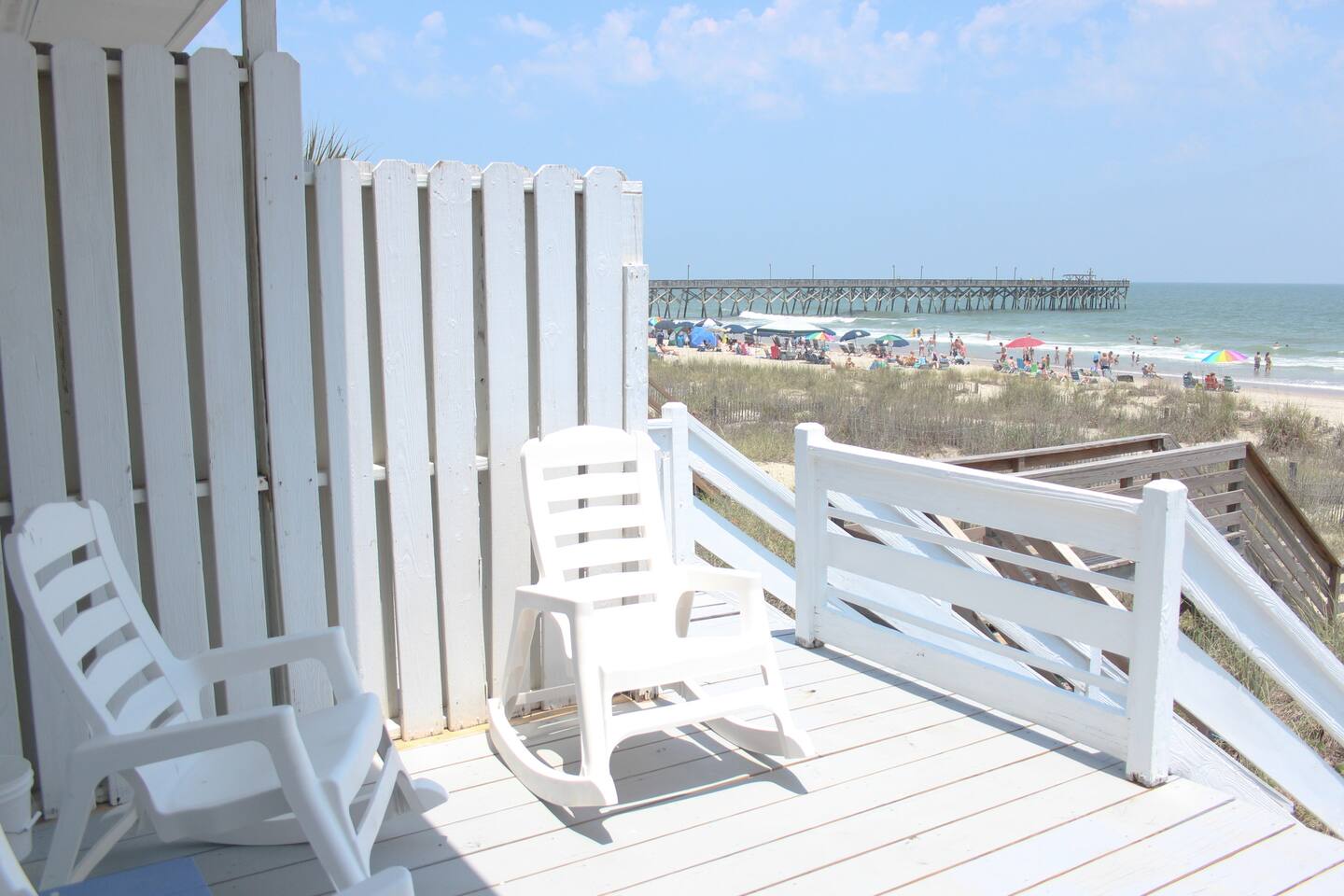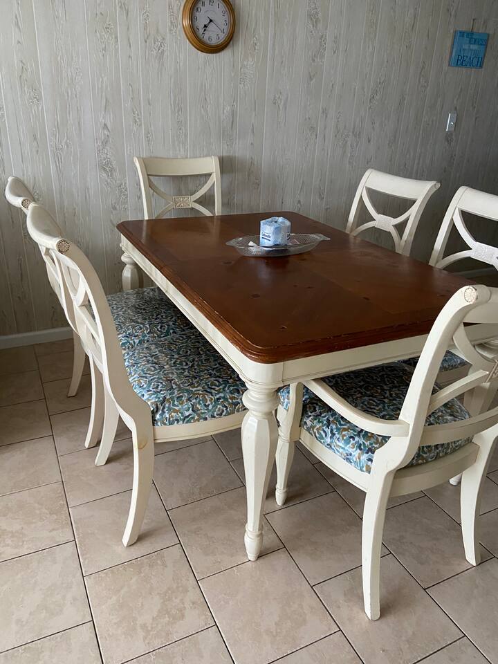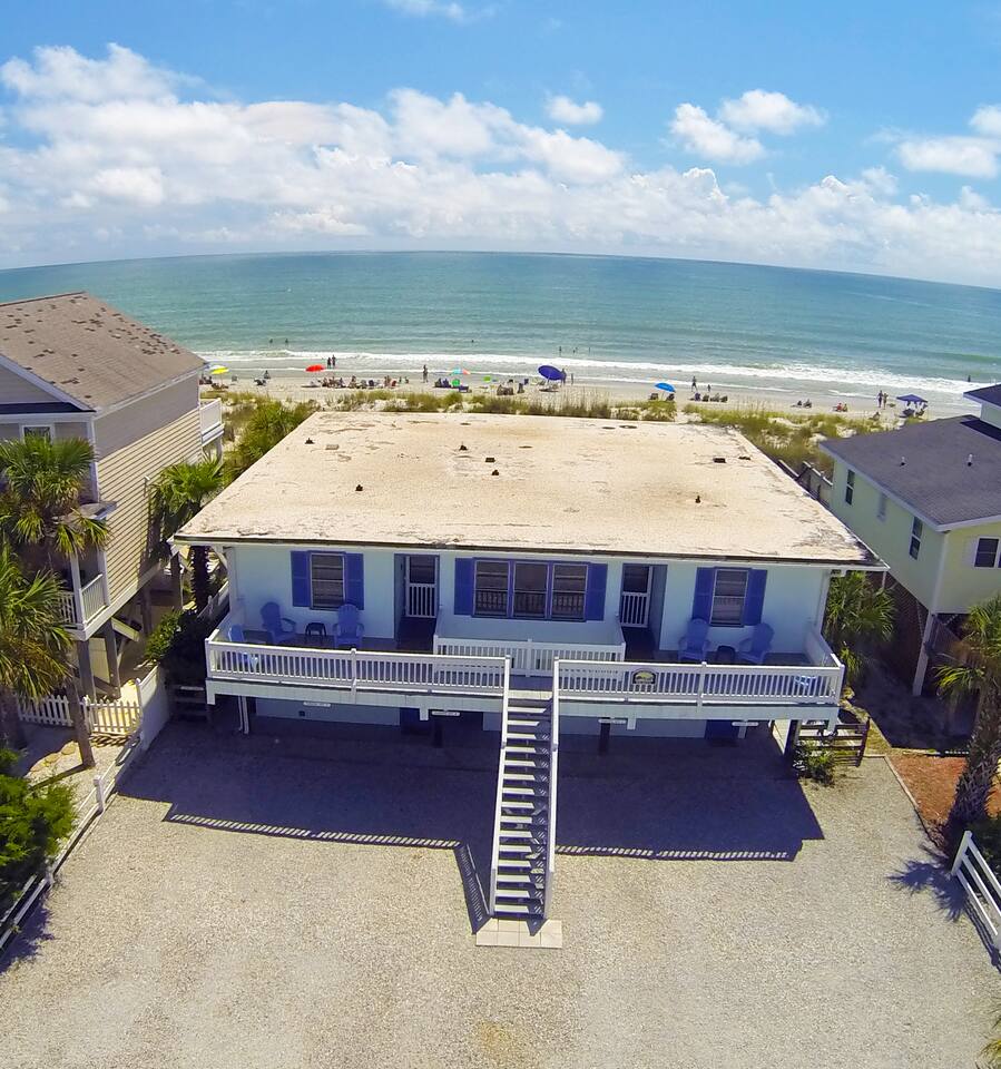 Stay on the Beach, Not Near It! All units are direct oceanfront, offering breathtaking views and direct beach access. Accommodations: - 2BR/2BA unit with a full kitchen - Townhouse setup: 1 bedroom upstairs (2 full beds), 1 bedroom downstairs (1 queen and 1 trundle bed) with bathroom - Queen Sleeper in the living room - Conveniently located on the 2nd floor, overlooking the ocean - Semi-private deck with 2 rocking chairs - Private parking for two vehicles in our lot - Living Room/Dining Room/Kitchen Combo with full fridge, microwave, coffee maker, blender, toaster, and all kitchen utensils, glasses, and cookware - Central air/heat and ceiling fans in each room - Shared washer/dryer - Outdoor deck and outdoor shower - Entertainment: 3 flat-screen TVs (40 inch), 2 DVD/VCR combos, and FREE unlimited WIFI - 2 outdoor charcoal grills and private outdoor shower with key Additional Units: We offer two 2-bedroom/1-bath units for 6-8 guests and a 3-bedroom/3-bath unit for 13 guests. Perfect for family gatherings—rent all four units for a private, yet communal vacation experience! Pet-Friendly: We welcome friendly, housebroken dogs with a $100 pet fee per dog (subject to weight and breed approval). Amenities: - Linens provided (included in the cleaning fee) - Access to beach, laundry, and parking Contact Us: Feel free to call or text for more details or to book your stay at our beachfront paradise. Enjoy the convenience and luxury of staying directly on Surfside Beach!