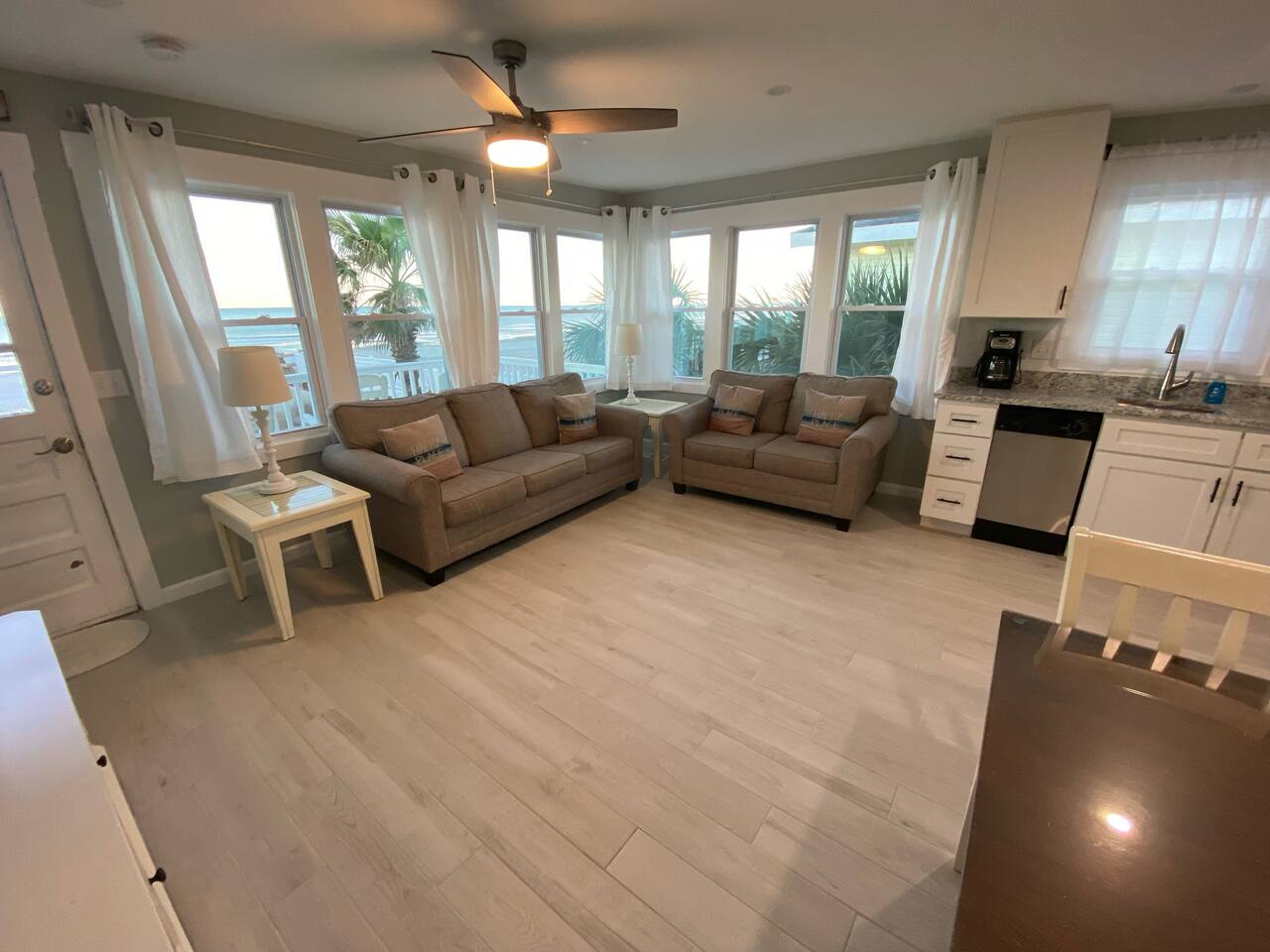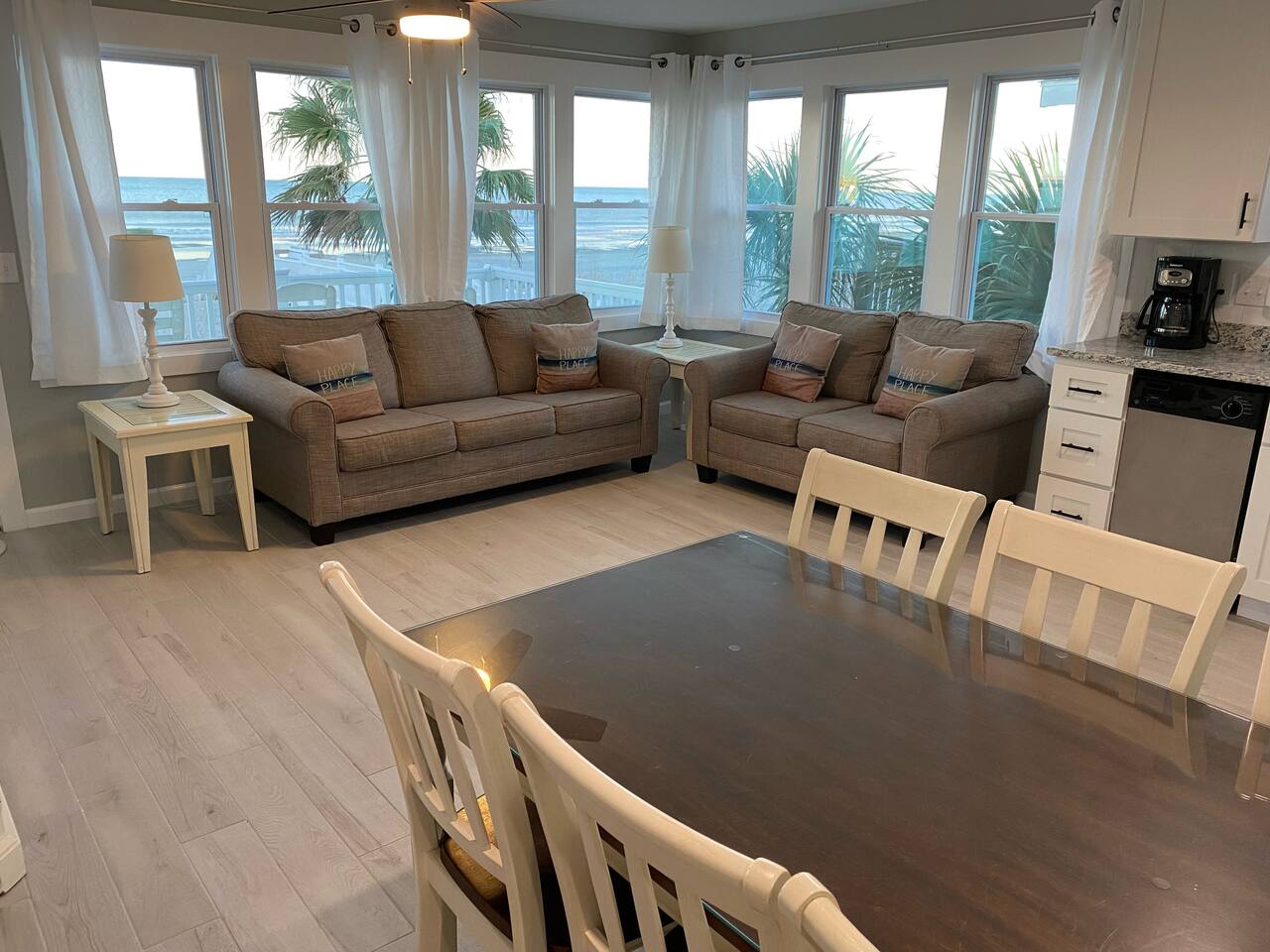 Stay on the Beach, Not Near It! All units are direct oceanfront, offering breathtaking views and direct beach access. Accommodations: - 2BR/1BA unit with a full kitchen - Queen Sleeper in the living room - Conveniently located on the 2nd floor, overlooking the ocean - Semi-private deck with 2 rocking chairs - Private parking for two vehicles in our lot - Living Room/Dining Room/Kitchen Combo with full fridge, microwave, coffee maker, blender, toaster, and all kitchen utensils, glasses, and cookware - Central air/heat and ceiling fans in each room - Shared washer/dryer - Outdoor deck and outdoor shower - Entertainment: 2 flat-screen TVs (40 inch), 2 DVD/VCR combos, and FREE unlimited WIFI - 2 outdoor charcoal grills and private outdoor shower with key Additional Units: We offer another 2-bedroom/1-bath unit for 6-8 guests, a 2-bedroom/2-bath units for 10 guests, and a 3-bedroom/3-bath unit for 13 guests . Perfect for family gatherings—rent all four units for a private, yet communal vacation experience! Pet-Friendly: We welcome friendly, housebroken dogs with a $100 pet fee per dog (subject to weight and breed approval). Amenities: - Linens provided (included in the cleaning fee) - Access to beach, laundry, and parking Contact Us: Feel free to call or text for more details or to book your stay at our beachfront paradise. Enjoy the convenience and luxury of staying directly on Surfside Beach!